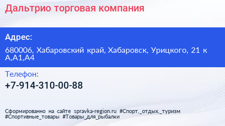 Дальтрио, торговая компания по адресу 680006, Хабаровский край, Хабаровск, Урицкого, 21 к А,А1,А4 в дальнейшем Организация, размещена в следующих категориях: