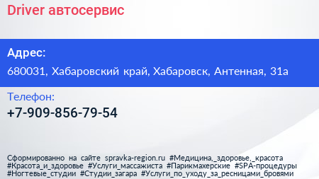Driver, автосервис по адресу 680031, Хабаровский край, Хабаровск, Антенная, 31а в дальнейшем Организация, размещена в следующих категориях: