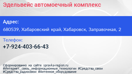 Эдельвейс, автомоечный комплекс по адресу 680539, Хабаровский край, Хабаровск, Заправочная, 2 в дальнейшем Организация, размещена в следующих категориях: