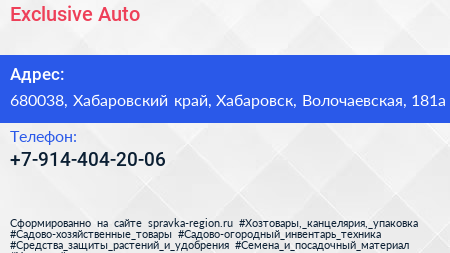 Exclusive Auto по адресу 680038, Хабаровский край, Хабаровск, Волочаевская, 181а в дальнейшем Организация, размещена в следующих категориях: