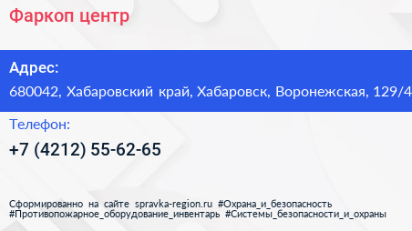Фаркоп-центр по адресу 680042, Хабаровский край, Хабаровск, Воронежская, 129/4 в дальнейшем Организация, размещена в следующих категориях: