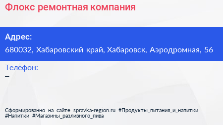 Флокс, ремонтная компания по адресу 680032, Хабаровский край, Хабаровск, Аэродромная, 56 в дальнейшем Организация, размещена в следующих категориях: