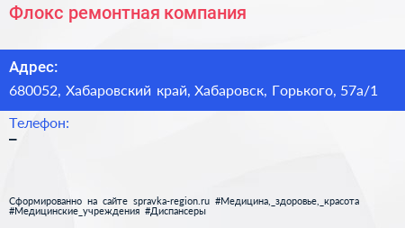 Флокс, ремонтная компания по адресу 680052, Хабаровский край, Хабаровск, Горького, 57а/1 в дальнейшем Организация, размещена в следующих категориях: