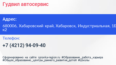 Гудвил, автосервис по адресу 680006, Хабаровский край, Хабаровск, Индустриальная, 1Б к2 в дальнейшем Организация, размещена в следующих категориях: