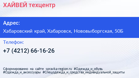 ХАЙВЕЙ, техцентр по адресу Хабаровский край, Хабаровск, Нововыборгская, 50Б в дальнейшем Организация, размещена в следующих категориях: