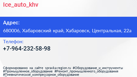 Ice_auto_khv по адресу 680006, Хабаровский край, Хабаровск, Центральная, 22а в дальнейшем Организация, размещена в следующих категориях: