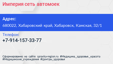 Империя, сеть автомоек по адресу 680022, Хабаровский край, Хабаровск, Камская, 32/1 в дальнейшем Организация, размещена в следующих категориях: