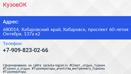 КузовОК по адресу 680014, Хабаровский край, Хабаровск, проспект 60-летия Октября, 137а к2 в дальнейшем Организация, размещена в следующих категориях: