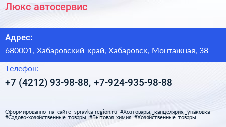 Люкс, автосервис по адресу 680001, Хабаровский край, Хабаровск, Монтажная, 38 в дальнейшем Организация, размещена в следующих категориях:
