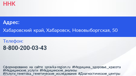 ННК по адресу Хабаровский край, Хабаровск, Нововыборгская, 50 в дальнейшем Организация, размещена в следующих категориях: