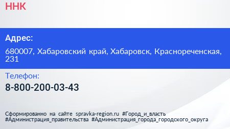ННК по адресу 680007, Хабаровский край, Хабаровск, Краснореченская, 231 в дальнейшем Организация, размещена в следующих категориях: