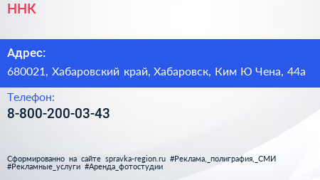ННК по адресу 680021, Хабаровский край, Хабаровск, Ким Ю Чена, 44а в дальнейшем Организация, размещена в следующих категориях: