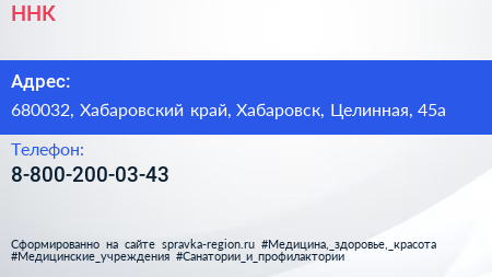 ННК по адресу 680032, Хабаровский край, Хабаровск, Целинная, 45а в дальнейшем Организация, размещена в следующих категориях: