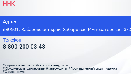 ННК по адресу 680501, Хабаровский край, Хабаровск, Императорская, 3/3 в дальнейшем Организация, размещена в следующих категориях: