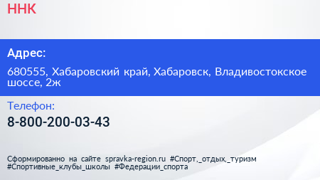 ННК по адресу 680555, Хабаровский край, Хабаровск, Владивостокское шоссе, 2ж в дальнейшем Организация, размещена в следующих категориях: