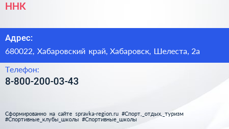 ННК по адресу 680022, Хабаровский край, Хабаровск, Шелеста, 2а в дальнейшем Организация, размещена в следующих категориях: