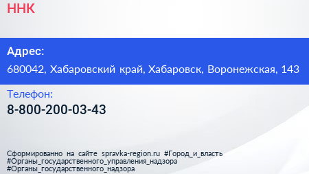 ННК по адресу 680042, Хабаровский край, Хабаровск, Воронежская, 143 в дальнейшем Организация, размещена в следующих категориях: