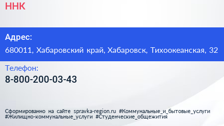 ННК по адресу 680011, Хабаровский край, Хабаровск, Тихоокеанская, 32 в дальнейшем Организация, размещена в следующих категориях: