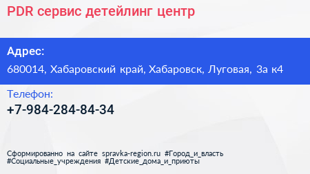 PDR сервис, детейлинг-центр по адресу 680014, Хабаровский край, Хабаровск, Луговая, 3а к4 в дальнейшем Организация, размещена в следующих категориях: