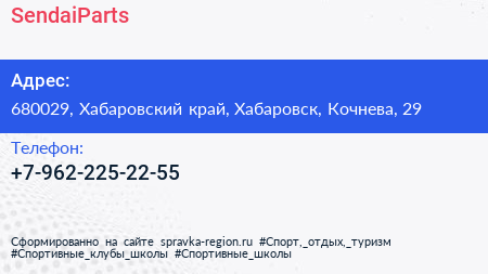SendaiParts по адресу 680029, Хабаровский край, Хабаровск, Кочнева, 29 в дальнейшем Организация, размещена в следующих категориях: