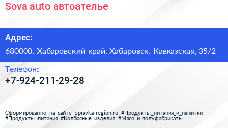Sova auto, автоателье по адресу 680000, Хабаровский край, Хабаровск, Кавказская, 35/2 в дальнейшем Организация, размещена в следующих категориях: