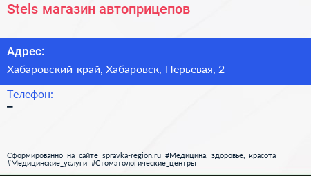 Stels, магазин автоприцепов по адресу Хабаровский край, Хабаровск, Перьевая, 2 в дальнейшем Организация, размещена в следующих категориях: