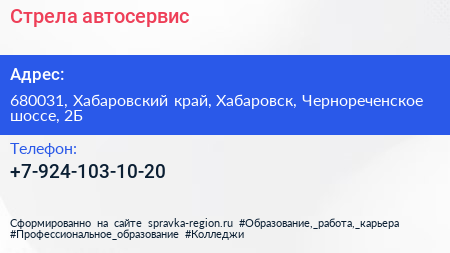 Стрела, автосервис по адресу 680031, Хабаровский край, Хабаровск, Чернореченское шоссе, 2Б в дальнейшем Организация, размещена в следующих категориях: