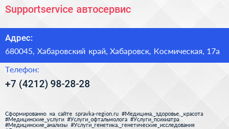 Supportservice, автосервис по адресу 680045, Хабаровский край, Хабаровск, Космическая, 17а в дальнейшем Организация, размещена в следующих категориях: