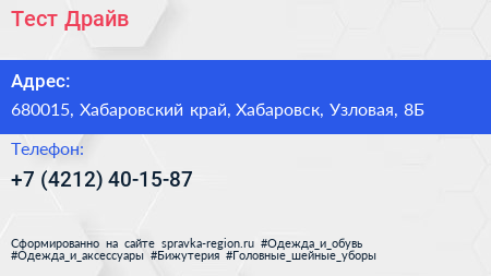 Тест-Драйв по адресу 680015, Хабаровский край, Хабаровск, Узловая, 8Б в дальнейшем Организация, размещена в следующих категориях: