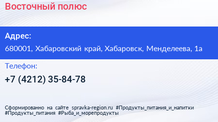 Восточный полюс по адресу 680001, Хабаровский край, Хабаровск, Менделеева, 1а в дальнейшем Организация, размещена в следующих категориях: