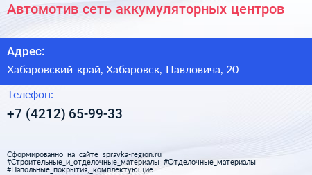 Автомотив, сеть аккумуляторных центров по адресу Хабаровский край, Хабаровск, Павловича, 20 в дальнейшем Организация, размещена в следующих категориях: