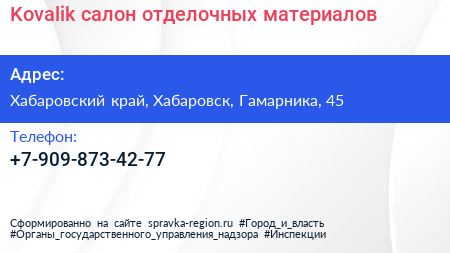 Kovalik, салон отделочных материалов по адресу Хабаровский край, Хабаровск, Гамарника, 45 в дальнейшем Организация, размещена в следующих категориях: