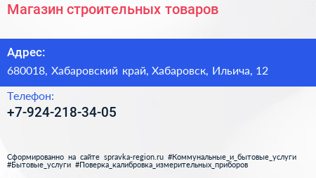 Магазин строительных товаров по адресу 680018, Хабаровский край, Хабаровск, Ильича, 12 в дальнейшем Организация, размещена в следующих категориях: