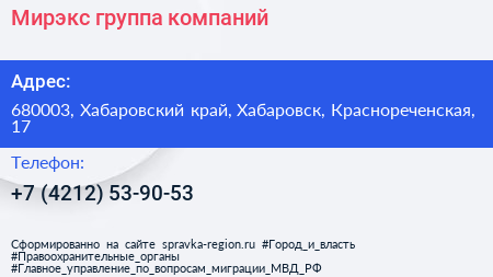 Мирэкс, группа компаний по адресу 680003, Хабаровский край, Хабаровск, Краснореченская, 17 в дальнейшем Организация, размещена в следующих категориях: