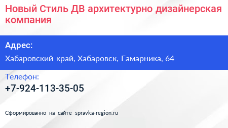 Новый Стиль ДВ, архитектурно-дизайнерская компания по адресу Хабаровский край, Хабаровск, Гамарника, 64 в дальнейшем Организация, размещена в следующих категориях: