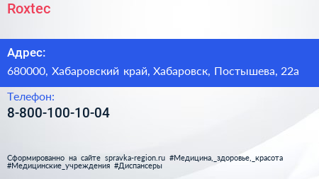 Roxtec по адресу 680000, Хабаровский край, Хабаровск, Постышева, 22а в дальнейшем Организация, размещена в следующих категориях: