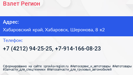 Взлет Регион по адресу Хабаровский край, Хабаровск, Шеронова, 8 к2 в дальнейшем Организация, размещена в следующих категориях: