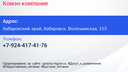 Комэн, компания по адресу Хабаровский край, Хабаровск, Волочаевская, 153 в дальнейшем Организация, размещена в следующих категориях: