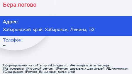 Бера логово по адресу Хабаровский край, Хабаровск, Ленина, 53 в дальнейшем Организация, размещена в следующих категориях: