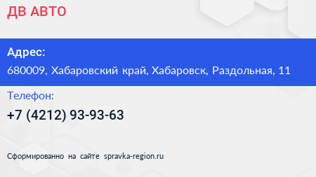 ДВ АВТО по адресу 680009, Хабаровский край, Хабаровск, Раздольная, 11 в дальнейшем Организация, размещена в следующих категориях: