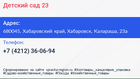Детский сад №23 по адресу 680045, Хабаровский край, Хабаровск, Калараша, 23а в дальнейшем Организация, размещена в следующих категориях: