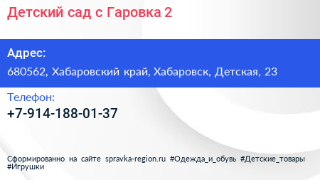 Детский сад, с. Гаровка-2 по адресу 680562, Хабаровский край, Хабаровск, Детская, 23 в дальнейшем Организация, размещена в следующих категориях: