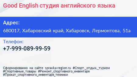 Good English, студия английского языка по адресу 680017, Хабаровский край, Хабаровск, Лермонтова, 51а в дальнейшем Организация, размещена в следующих категориях: