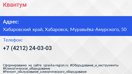 Квантум по адресу Хабаровский край, Хабаровск, Муравьёва-Амурского, 50 в дальнейшем Организация, размещена в следующих категориях: