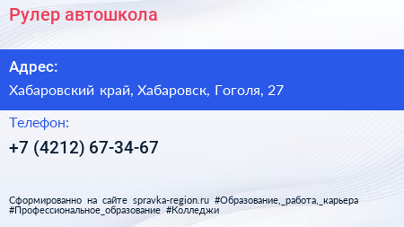 Рулер, автошкола по адресу Хабаровский край, Хабаровск, Гоголя, 27 в дальнейшем Организация, размещена в следующих категориях: