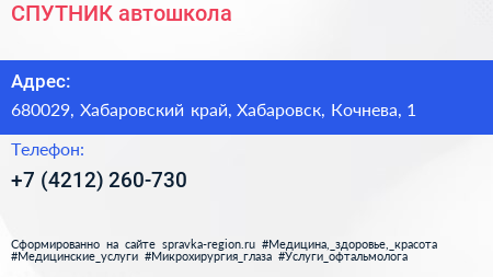 СПУТНИК, автошкола по адресу 680029, Хабаровский край, Хабаровск, Кочнева, 1 в дальнейшем Организация, размещена в следующих категориях: