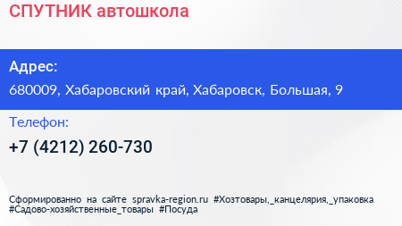 СПУТНИК, автошкола по адресу 680009, Хабаровский край, Хабаровск, Большая, 9 в дальнейшем Организация, размещена в следующих категориях: