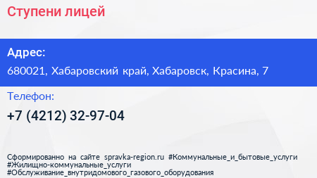 Ступени, лицей по адресу 680021, Хабаровский край, Хабаровск, Красина, 7 в дальнейшем Организация, размещена в следующих категориях: