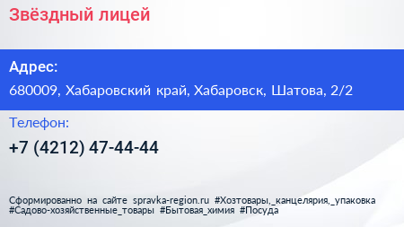 Звёздный, лицей по адресу 680009, Хабаровский край, Хабаровск, Шатова, 2/2 в дальнейшем Организация, размещена в следующих категориях: