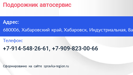 Подорожник, автосервис по адресу 680006, Хабаровский край, Хабаровск, Индустриальная, 8а в дальнейшем Организация, размещена в следующих категориях: